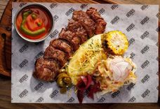 375 г • стейк мачете, картофельное пюре, кукуруза, куртидо, халапеньо, криспи лук, киви сальса верде