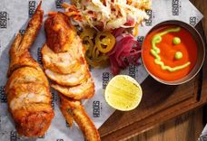 260 г • запеченное крыло фаршированное сыром чеддер и креветкой, салат куртидо, гуако-сальса