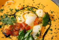300 г • креветочный бульон, кокосовое молоко, кальмар, креветка, зелень