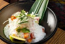 210 г • тартар из тунца, авокадо, хурма, огурец, кокосовое облако
