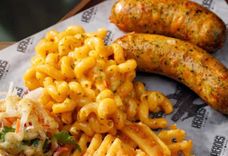 495 г • колбаски карри-чеддер, Mac&Cheese (Мак энд чиз), криспы, куртидо, халапеньо, маринованный лук